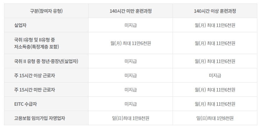 훈련 장려금은 최대 월 11만 6천 원까지 지급됩니다.