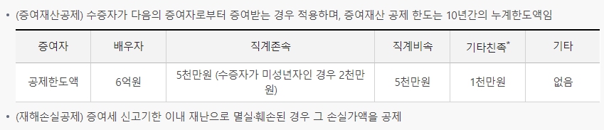 증여세 면제 한도액